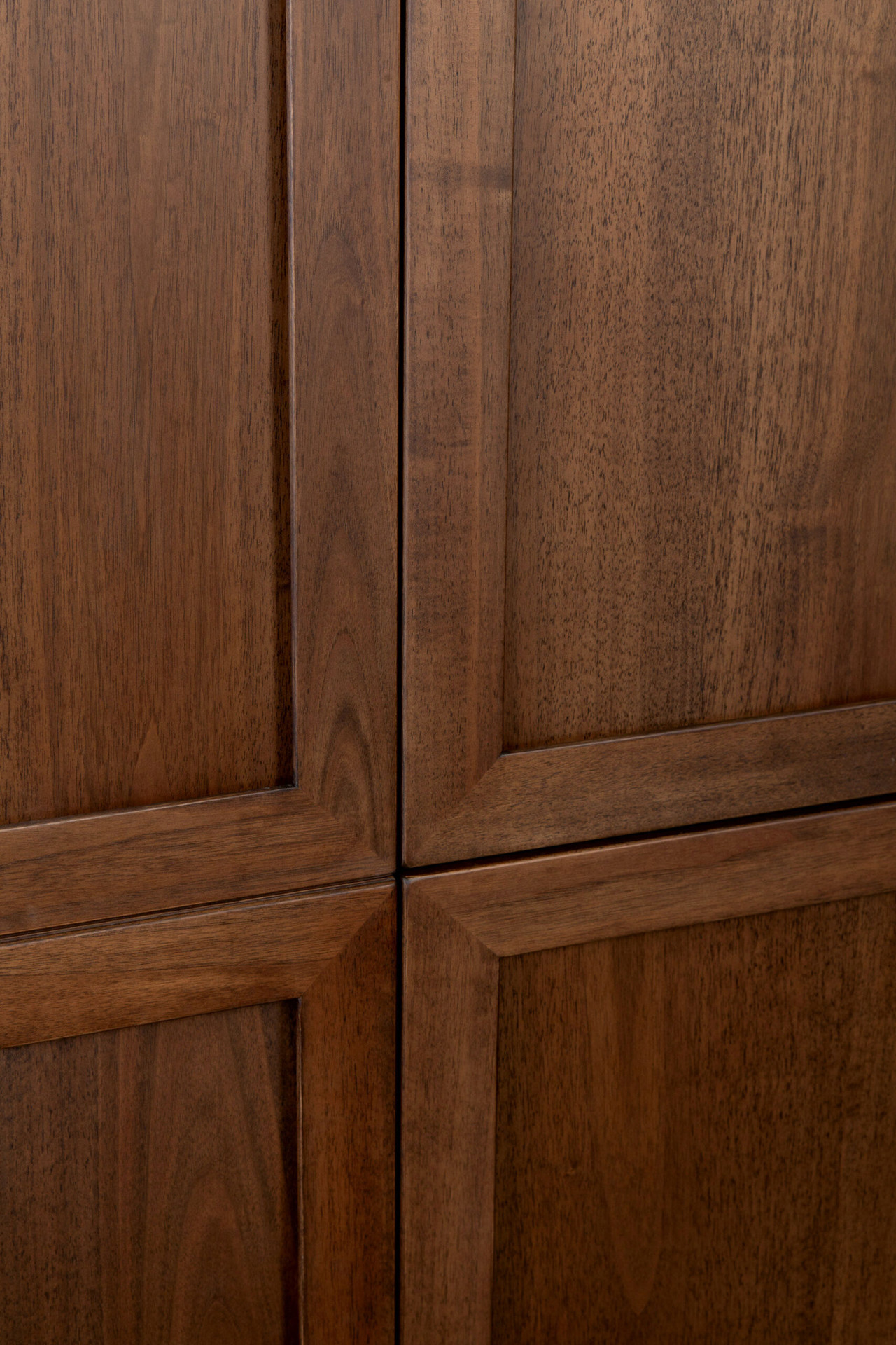 새로운 Atlante+Virtus 주방은 대담하고 현대적인 감각을 지닌 브러시드 빈티지 스틸과 Atlante boiserie의 따뜻한 토바코 월넛 원목의 만남으로 탄생했습니다.